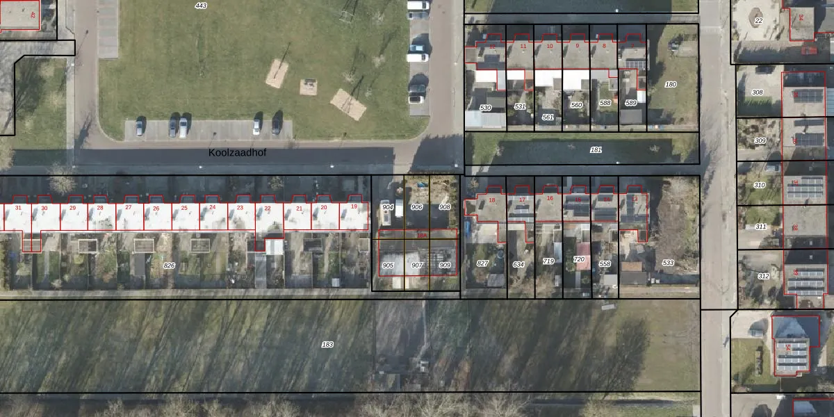 Gebruik de zoekbalk of klik op een perceel voor informatie over de adressen binnen dit perceel.