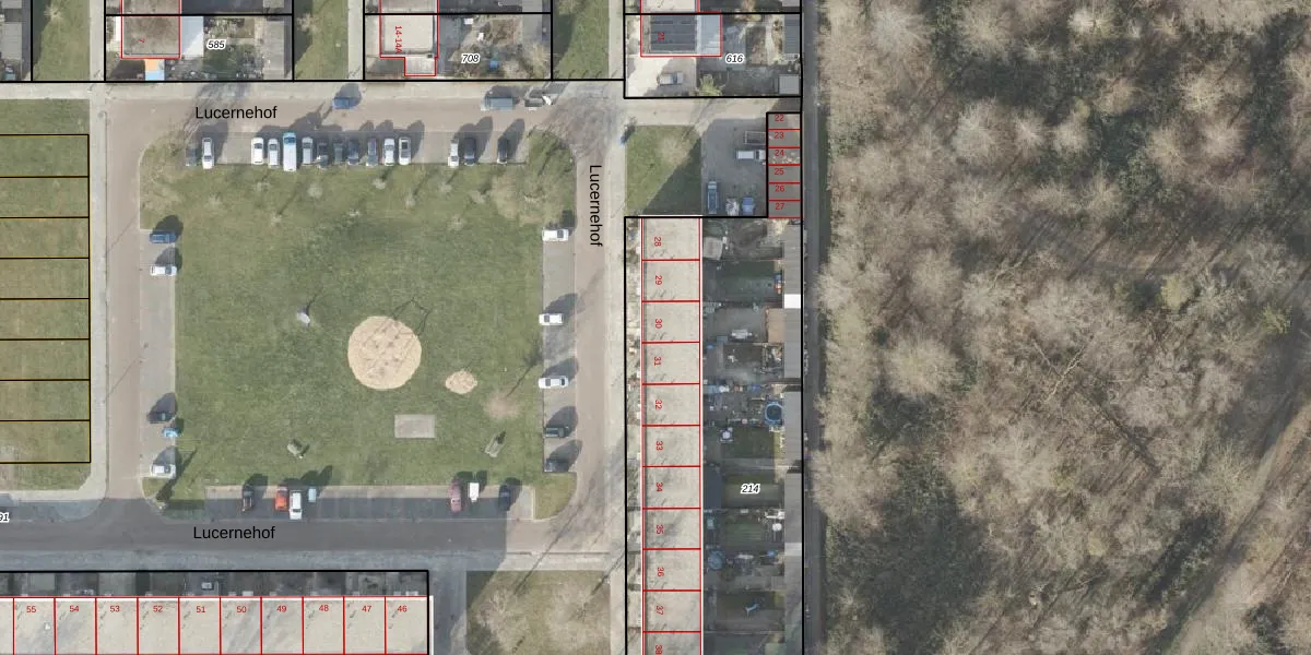 Het perceel waarop Lucernehof 30 staat heeft een oppervlakte van 2502 m². Dit is een zeer groot perceel. De perceeloppervlakte wordt geregistreerd door het Kadaster. Gedetailleerde informatie over de maten van dit perceel kunt u vinden in het rapport Kadastrale kaart met maatvoering van Lucernehof 30.