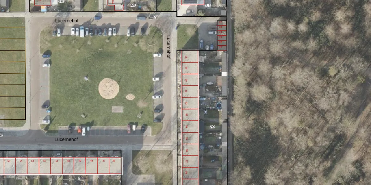 Het perceel waarop Lucernehof 31 staat heeft een oppervlakte van 2502 m². Dit is een zeer groot perceel. De perceeloppervlakte wordt geregistreerd door het Kadaster. Gedetailleerde informatie over de maten van dit perceel kunt u vinden in het rapport Kadastrale kaart met maatvoering van Lucernehof 31.