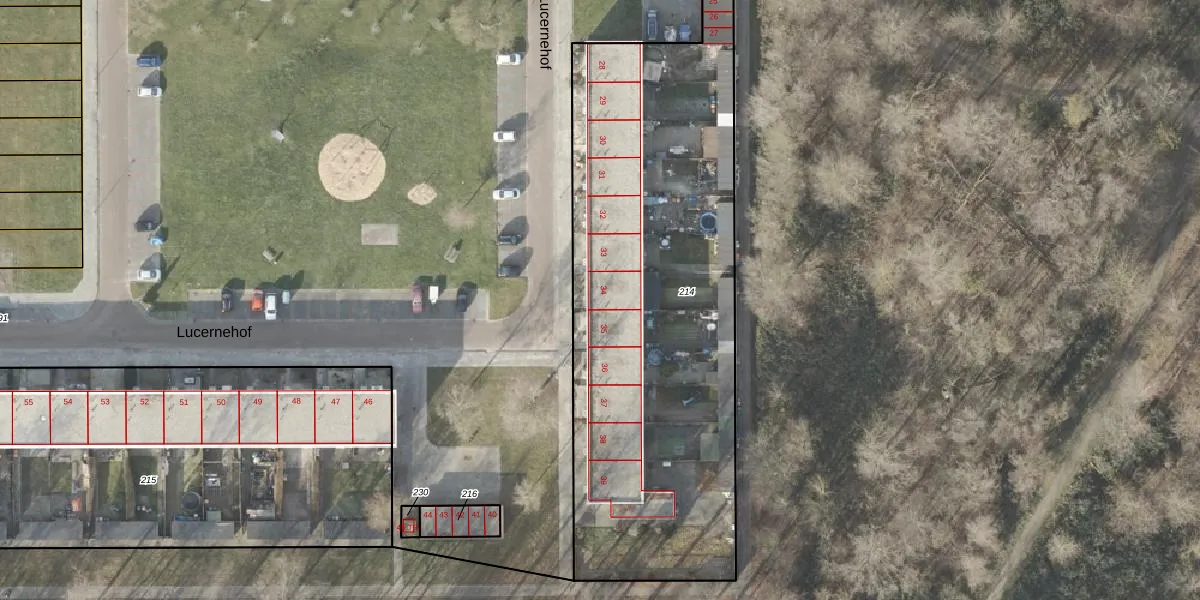 Het perceel waarop Lucernehof 34 staat heeft een oppervlakte van 2502 m². Dit is een zeer groot perceel. De perceeloppervlakte wordt geregistreerd door het Kadaster. Gedetailleerde informatie over de maten van dit perceel kunt u vinden in het rapport Kadastrale kaart met maatvoering van Lucernehof 34.