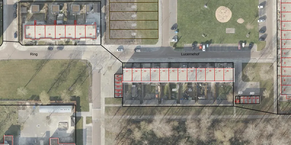 Het perceel waarop Lucernehof 55 staat heeft een oppervlakte van 2380 m². Dit is een zeer groot perceel. De perceeloppervlakte wordt geregistreerd door het Kadaster. Gedetailleerde informatie over de maten van dit perceel kunt u vinden in het rapport Kadastrale kaart met maatvoering van Lucernehof 55.