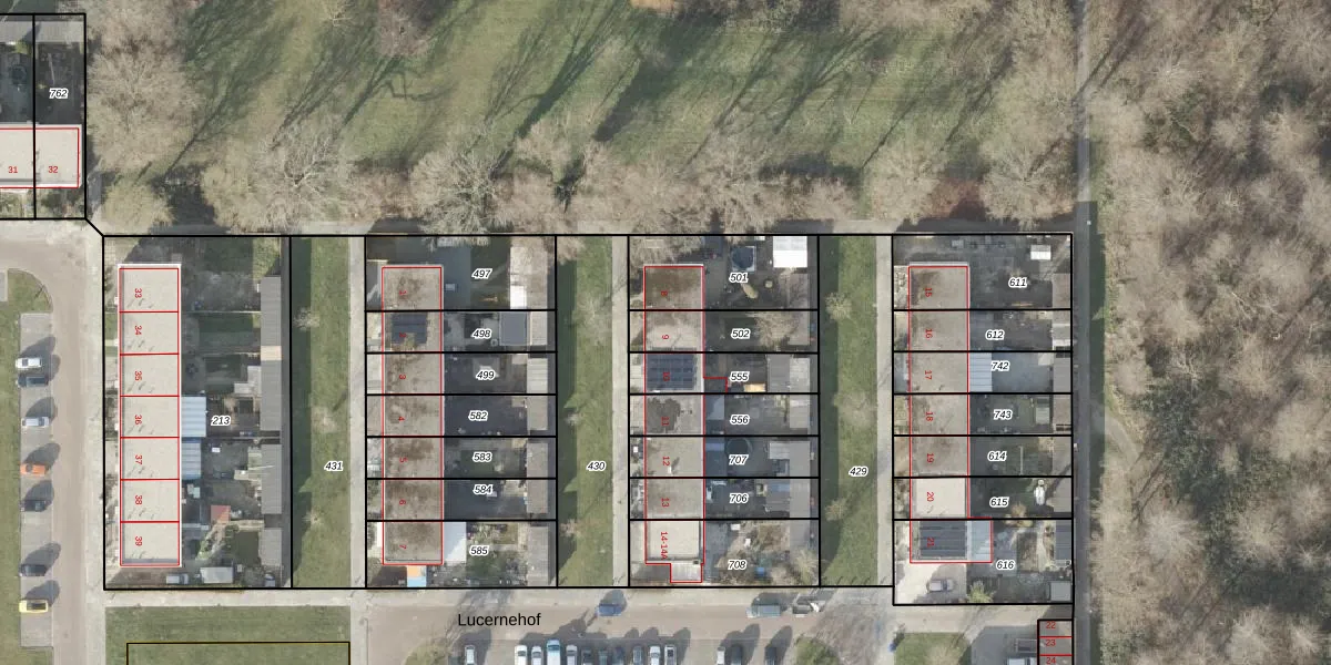 Het perceel waarop Lucernehof 9 staat heeft een oppervlakte van 180 m². Dit is een middelgroot perceel. De perceeloppervlakte wordt geregistreerd door het Kadaster. Gedetailleerde informatie over de maten van dit perceel kunt u vinden in het rapport Kadastrale kaart met maatvoering van Lucernehof 9.