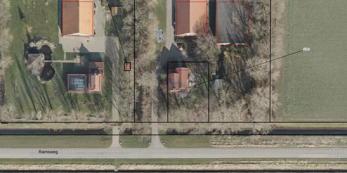 Ramsweg 18 is gelegen op kadastraal perceel NOP00D1202. Deze kadastrale aanduiding is uniek en wordt gebruikt door het Kadaster om eigendomsrechten en andere zakelijke rechten vast te leggen. Het perceel maakt onderdeel uit van de kadastrale gemeente Noordoostpolder.