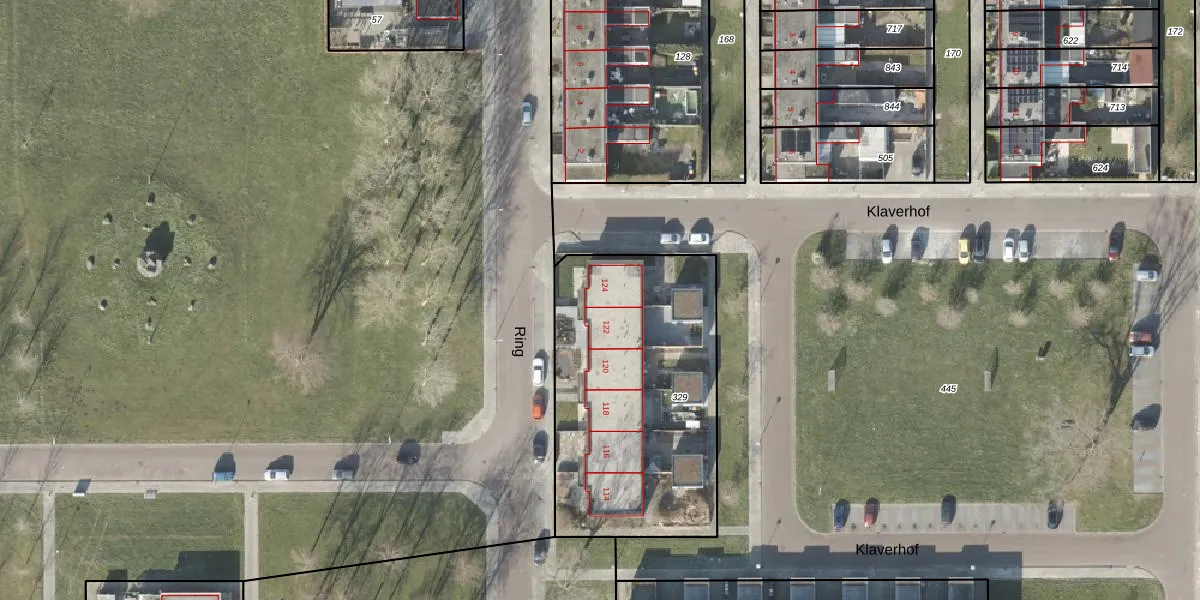 Het perceel waarop Ring 124 staat heeft een oppervlakte van 1267 m². Dit is een zeer groot perceel. De perceeloppervlakte wordt geregistreerd door het Kadaster. Gedetailleerde informatie over de maten van dit perceel kunt u vinden in het rapport Kadastrale kaart met maatvoering van Ring 124.