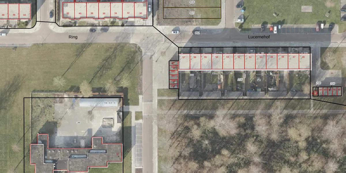 Het perceel waarop Ring 28-A staat heeft een oppervlakte van 2380 m². Dit is een zeer groot perceel. De perceeloppervlakte wordt geregistreerd door het Kadaster. Gedetailleerde informatie over de maten van dit perceel kunt u vinden in het rapport Kadastrale kaart met maatvoering van Ring 28-A.