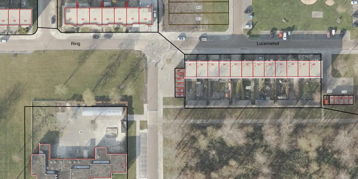 Het perceel waarop Ring 28-B staat heeft een oppervlakte van 2380 m². Dit is een zeer groot perceel. De perceeloppervlakte wordt geregistreerd door het Kadaster. Gedetailleerde informatie over de maten van dit perceel kunt u vinden in het rapport Kadastrale kaart met maatvoering van Ring 28-B.
