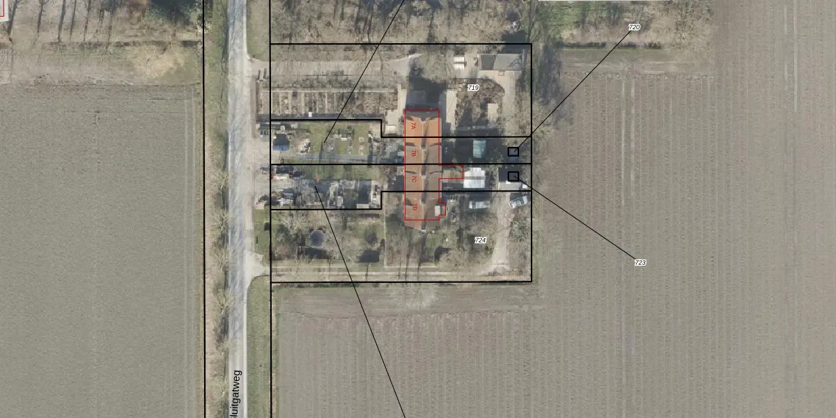 Het perceel waarop Sluitgatweg 7-D staat heeft een oppervlakte van 1240 m². Dit is een zeer groot perceel. De perceeloppervlakte wordt geregistreerd door het Kadaster. Gedetailleerde informatie over de maten van dit perceel kunt u vinden in het rapport Kadastrale kaart met maatvoering van Sluitgatweg 7-D.