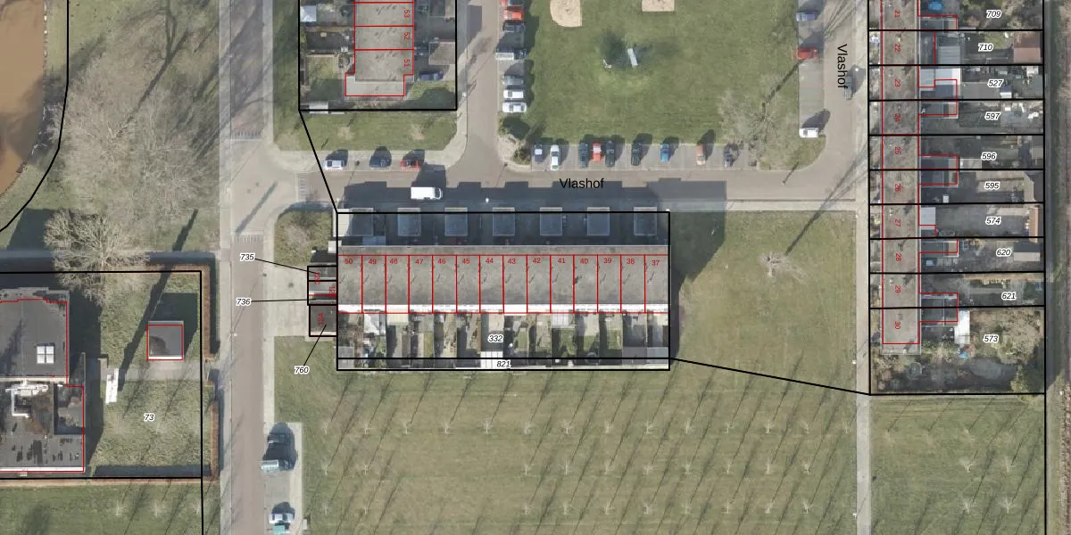 Het perceel waarop Vlashof 42 staat heeft een oppervlakte van 1690 m². Dit is een zeer groot perceel. De perceeloppervlakte wordt geregistreerd door het Kadaster. Gedetailleerde informatie over de maten van dit perceel kunt u vinden in het rapport Kadastrale kaart met maatvoering van Vlashof 42.