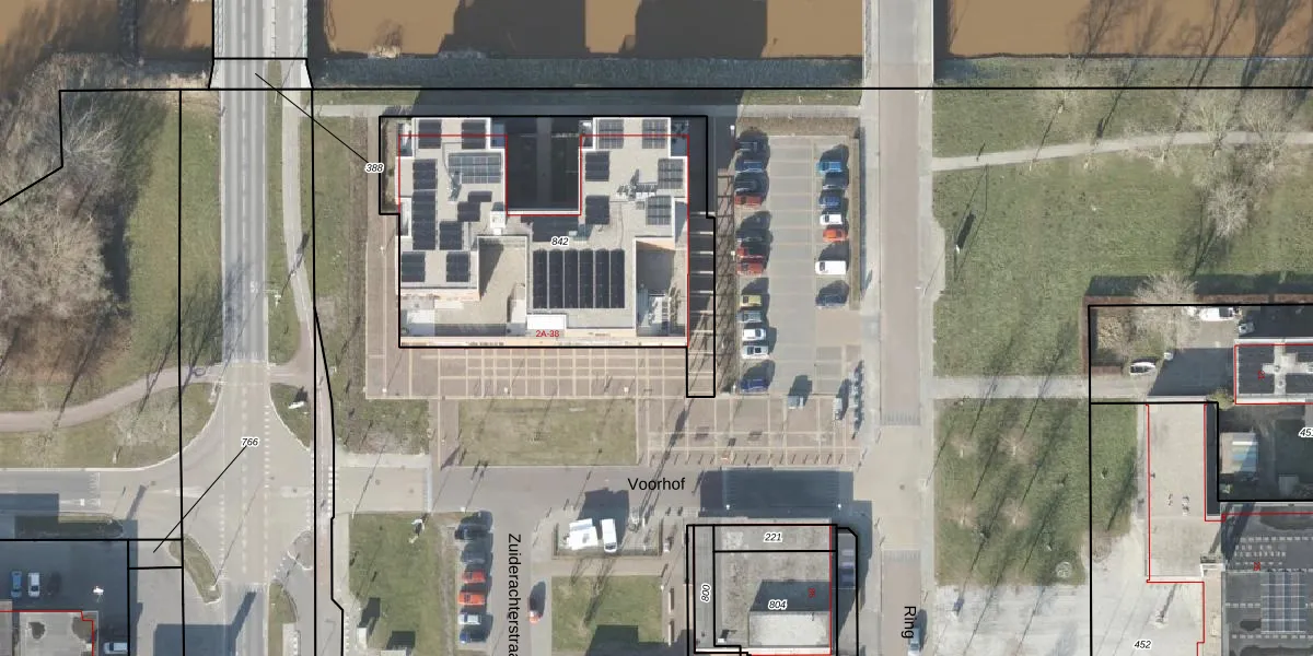 Voorhof 2-E is gelegen op kadastraal perceel NOP00DZ842. Deze kadastrale aanduiding is uniek en wordt gebruikt door het Kadaster om eigendomsrechten en andere zakelijke rechten vast te leggen. Het perceel maakt onderdeel uit van de kadastrale gemeente Noordoostpolder.