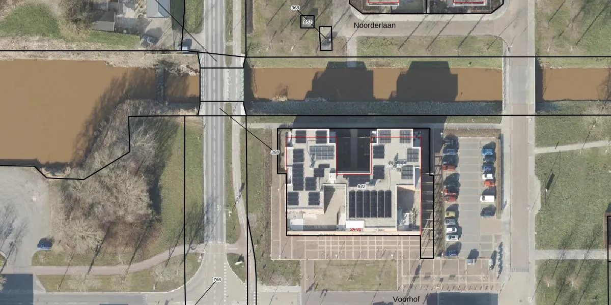 Voorhof 38 is gelegen op kadastraal perceel NOP00DZ842. Deze kadastrale aanduiding is uniek en wordt gebruikt door het Kadaster om eigendomsrechten en andere zakelijke rechten vast te leggen. Het perceel maakt onderdeel uit van de kadastrale gemeente Noordoostpolder.