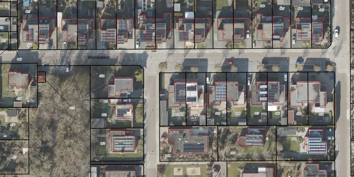Het perceel waarop Wendakker 27 staat heeft een oppervlakte van 449 m². Dit is een groot perceel. De perceeloppervlakte wordt geregistreerd door het Kadaster. Gedetailleerde informatie over de maten van dit perceel kunt u vinden in het rapport Kadastrale kaart met maatvoering van Wendakker 27.