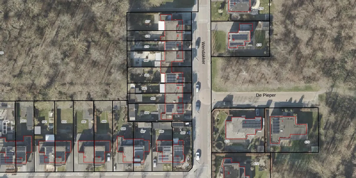 Het perceel waarop Wendakker 66 staat heeft een oppervlakte van 206 m². Dit is een middelgroot perceel. De perceeloppervlakte wordt geregistreerd door het Kadaster. Gedetailleerde informatie over de maten van dit perceel kunt u vinden in het rapport Kadastrale kaart met maatvoering van Wendakker 66.
