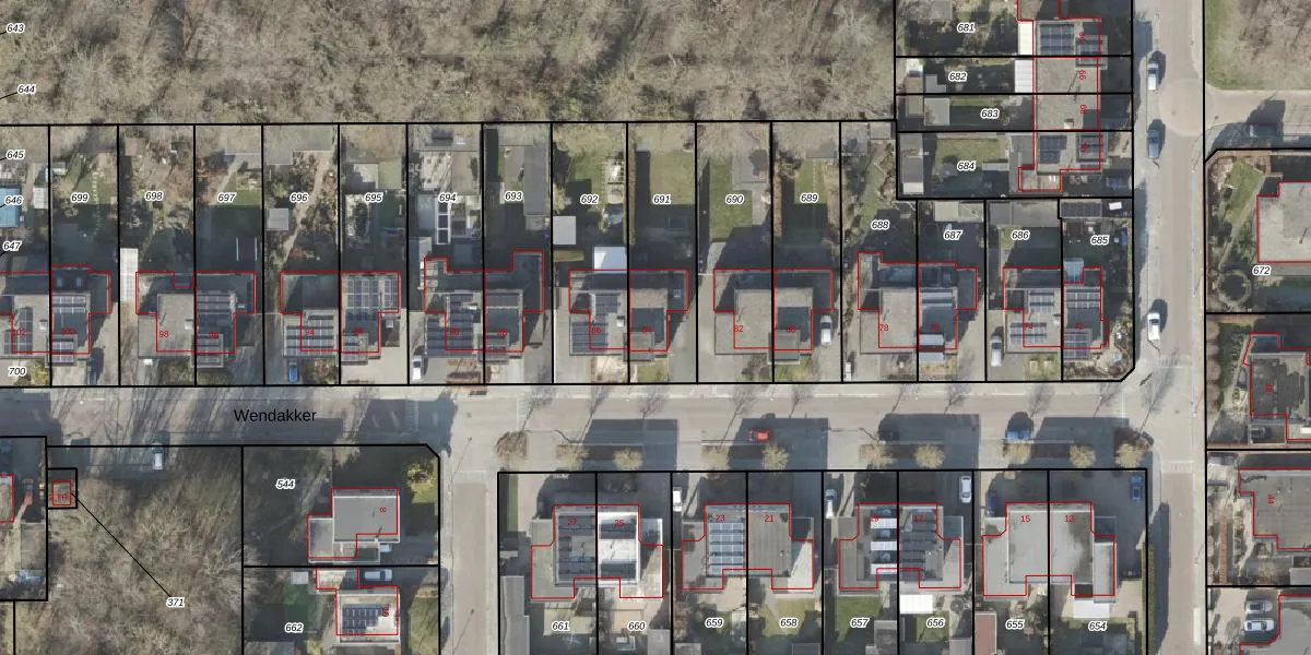 Het perceel waarop Wendakker 84 staat heeft een oppervlakte van 417 m². Dit is een groot perceel. De perceeloppervlakte wordt geregistreerd door het Kadaster. Gedetailleerde informatie over de maten van dit perceel kunt u vinden in het rapport Kadastrale kaart met maatvoering van Wendakker 84.
