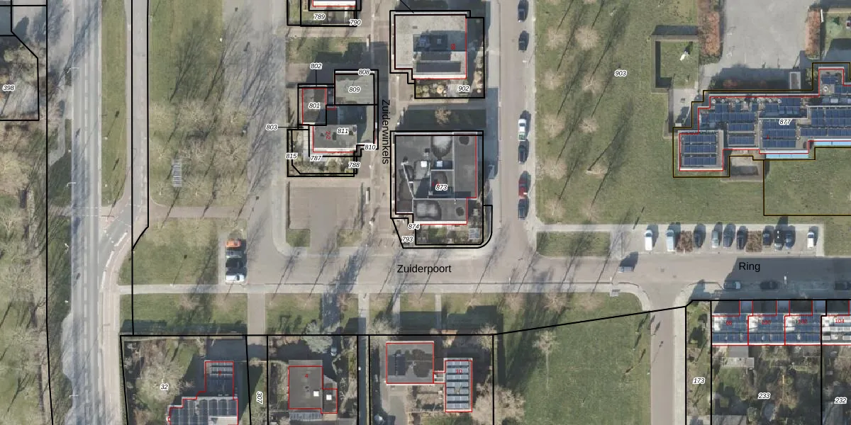 Het perceel waarop Zuiderpoort 1 staat heeft een oppervlakte van 493 m². Dit is een groot perceel. De perceeloppervlakte wordt geregistreerd door het Kadaster. Gedetailleerde informatie over de maten van dit perceel kunt u vinden in het rapport Kadastrale kaart met maatvoering van Zuiderpoort 1.