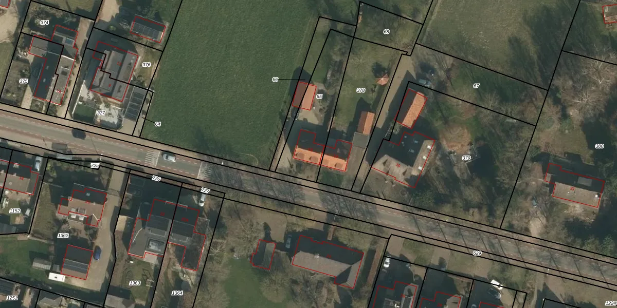 Het perceel waarop het adres ligt is NDA00-D-65. De afkorting 'NDA00' staat voor kadastrale gemeente Nederasselt. De gemiddelde perceelgrootte in Nederasselt is 7634,99 m². Dit perceel is kleiner: de perceeloppervlakte bedraagt 550 m². Het kleinste perceel in de kadastrale gemeente is 0 m² groot. De grootste perceeloppervlakte is 20,0 ha. Er zijn geen andere adressen aanwezig op het perceel. De huidige grenzen van het perceel zijn digitaal in de Basisregistratie Kadaster (BRK) geregistreerd op 06-04-2004.