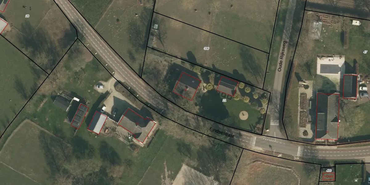 Eindsestraat 12 is gelegen op kadastraal perceel NDA00D21. Deze kadastrale aanduiding is uniek en wordt gebruikt door het Kadaster om eigendomsrechten en andere zakelijke rechten vast te leggen. Het perceel maakt onderdeel uit van de kadastrale gemeente Nederasselt.