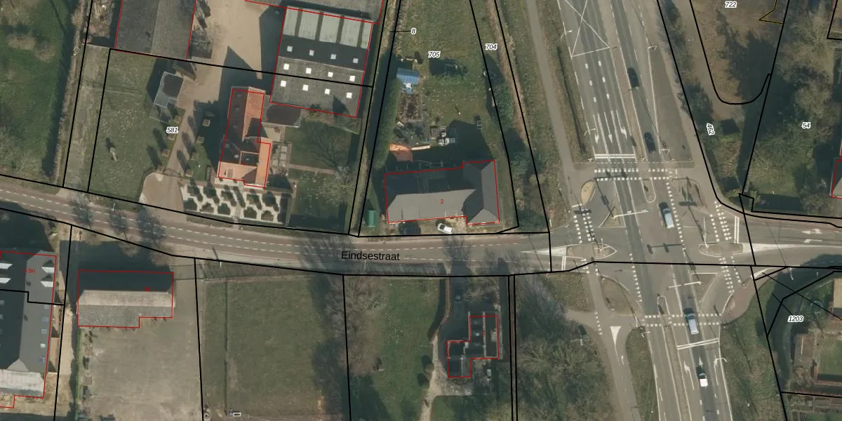 Het perceel waarop Eindsestraat 2-C staat heeft een oppervlakte van 1815 m². Dit is een zeer groot perceel. De perceeloppervlakte wordt geregistreerd door het Kadaster. Gedetailleerde informatie over de maten van dit perceel kunt u vinden in het rapport Kadastrale kaart met maatvoering van Eindsestraat 2-C.