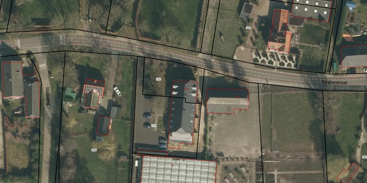 Het perceel waarop Eindsestraat 3 staat heeft een oppervlakte van 639 m². Dit is een groot perceel. De perceeloppervlakte wordt geregistreerd door het Kadaster. Gedetailleerde informatie over de maten van dit perceel kunt u vinden in het rapport Kadastrale kaart met maatvoering van Eindsestraat 3.