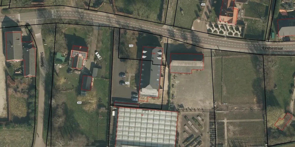 Het perceel waarop Eindsestraat 3-E staat heeft een oppervlakte van 1205 m². Dit is een zeer groot perceel. De perceeloppervlakte wordt geregistreerd door het Kadaster. Gedetailleerde informatie over de maten van dit perceel kunt u vinden in het rapport Kadastrale kaart met maatvoering van Eindsestraat 3-E.