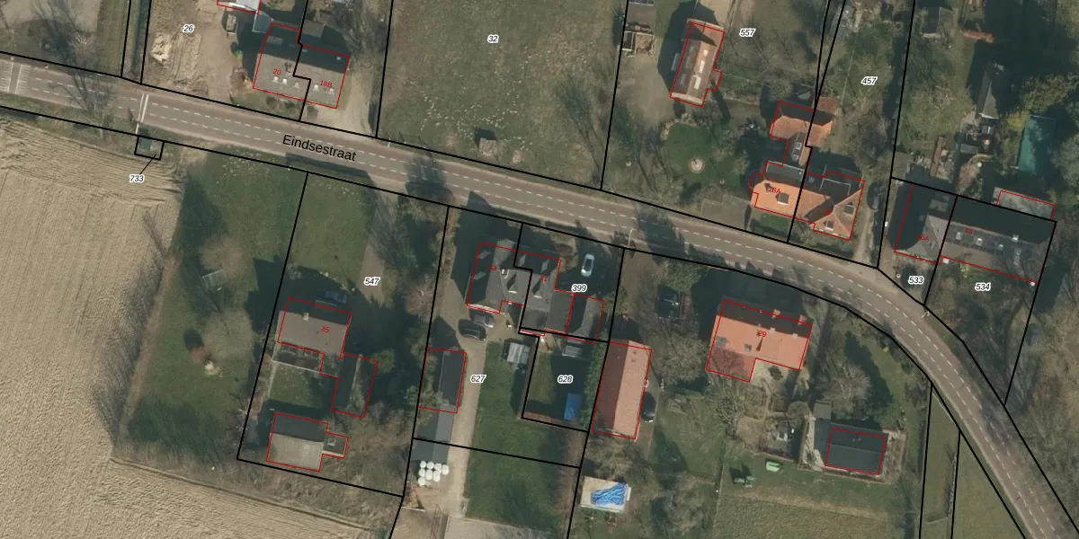 Het perceel waarop Eindsestraat 31 staat heeft een oppervlakte van 313 m². Dit is een groot perceel. De perceeloppervlakte wordt geregistreerd door het Kadaster. Gedetailleerde informatie over de maten van dit perceel kunt u vinden in het rapport Kadastrale kaart met maatvoering van Eindsestraat 31.