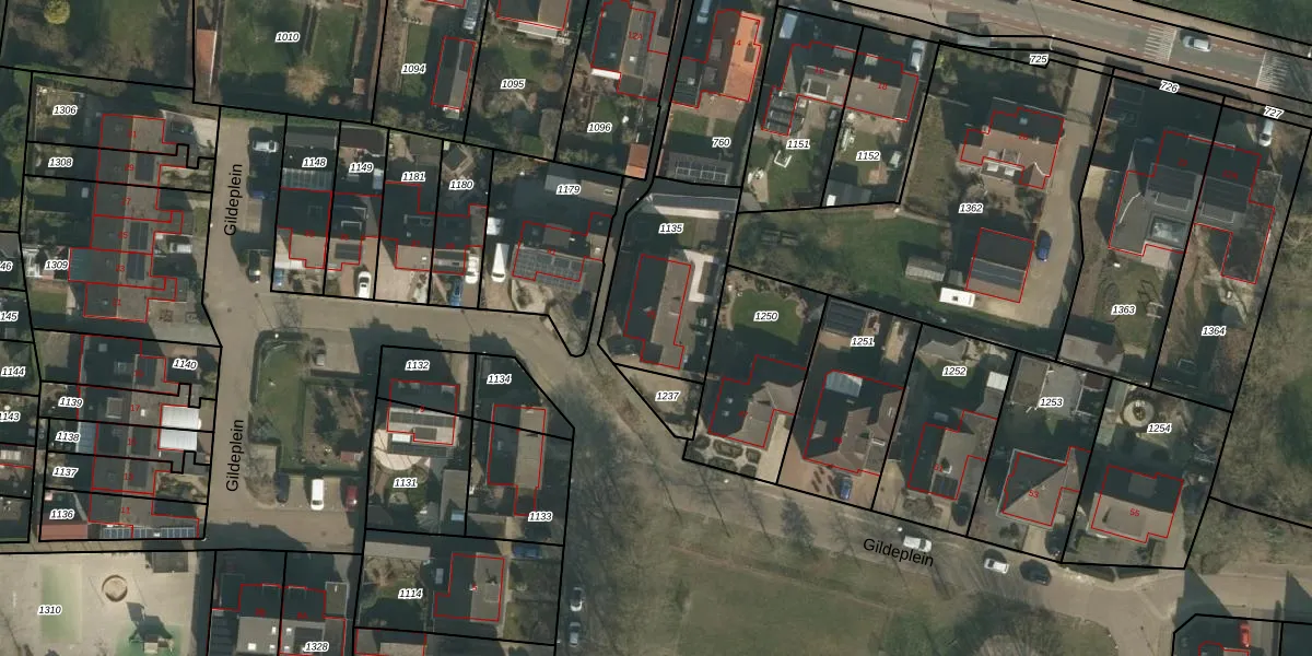 Gildeplein 45 is gelegen op kadastraal perceel NDA00B1135. Deze kadastrale aanduiding is uniek en wordt gebruikt door het Kadaster om eigendomsrechten en andere zakelijke rechten vast te leggen. Het perceel maakt onderdeel uit van de kadastrale gemeente Nederasselt.