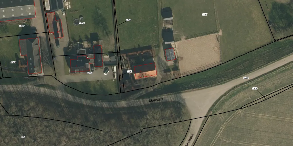 Het perceel waarop Maasdijk 5 staat heeft een oppervlakte van 7555 m². Dit is een zeer groot perceel. De perceeloppervlakte wordt geregistreerd door het Kadaster. Gedetailleerde informatie over de maten van dit perceel kunt u vinden in het rapport Kadastrale kaart met maatvoering van Maasdijk 5.