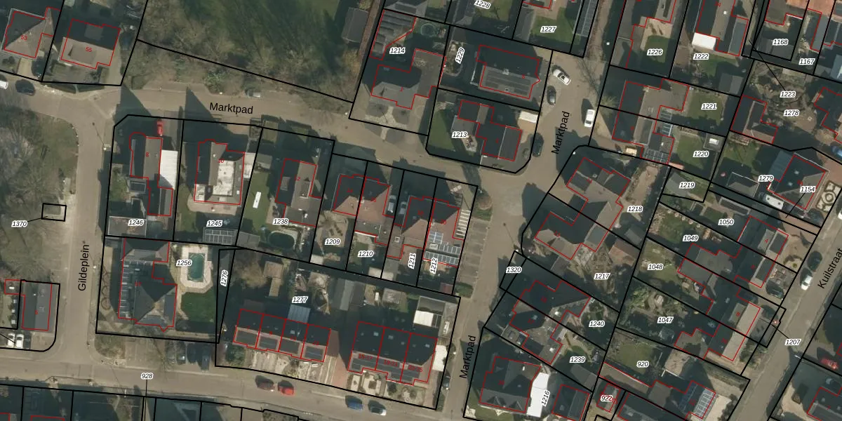 Het perceel waarop Marktpad 18 staat heeft een oppervlakte van 230 m². Dit is een middelgroot perceel. De perceeloppervlakte wordt geregistreerd door het Kadaster. Gedetailleerde informatie over de maten van dit perceel kunt u vinden in het rapport Kadastrale kaart met maatvoering van Marktpad 18.