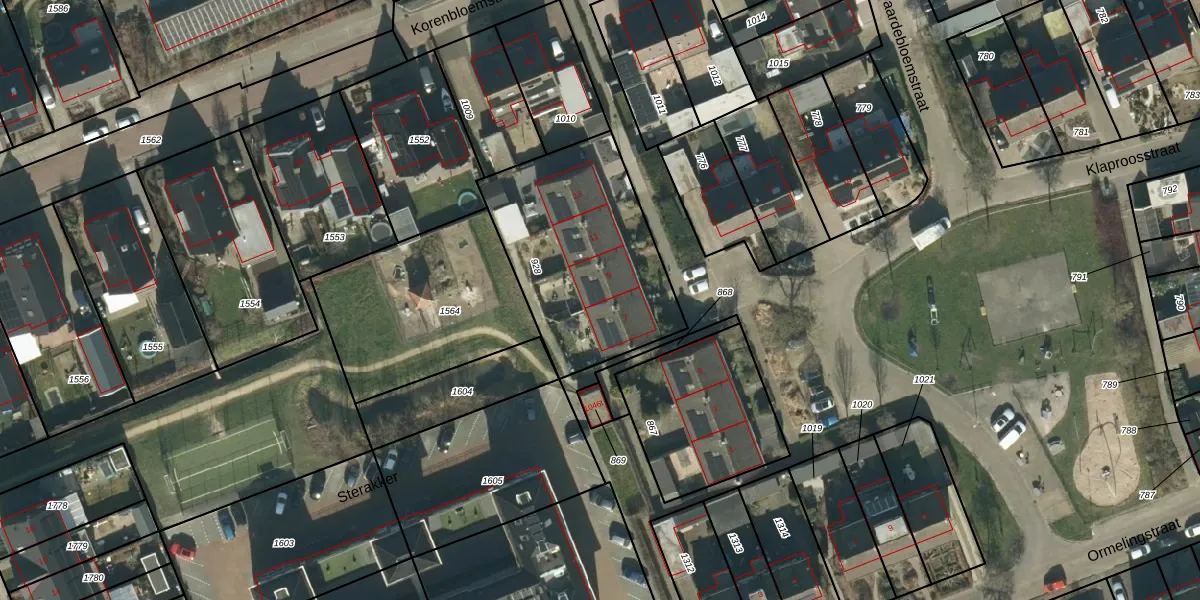 Het perceel waarop Klaproosstraat 9 staat heeft een oppervlakte van 830 m². Dit is een groot perceel. De perceeloppervlakte wordt geregistreerd door het Kadaster. Gedetailleerde informatie over de maten van dit perceel kunt u vinden in het rapport Kadastrale kaart met maatvoering van Klaproosstraat 9.