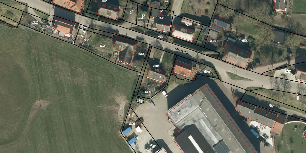 Het perceel waarop Maasdijk 5-a staat heeft een oppervlakte van 502 m². Dit is een groot perceel. De perceeloppervlakte wordt geregistreerd door het Kadaster. Gedetailleerde informatie over de maten van dit perceel kunt u vinden in het rapport Kadastrale kaart met maatvoering van Maasdijk 5-a.