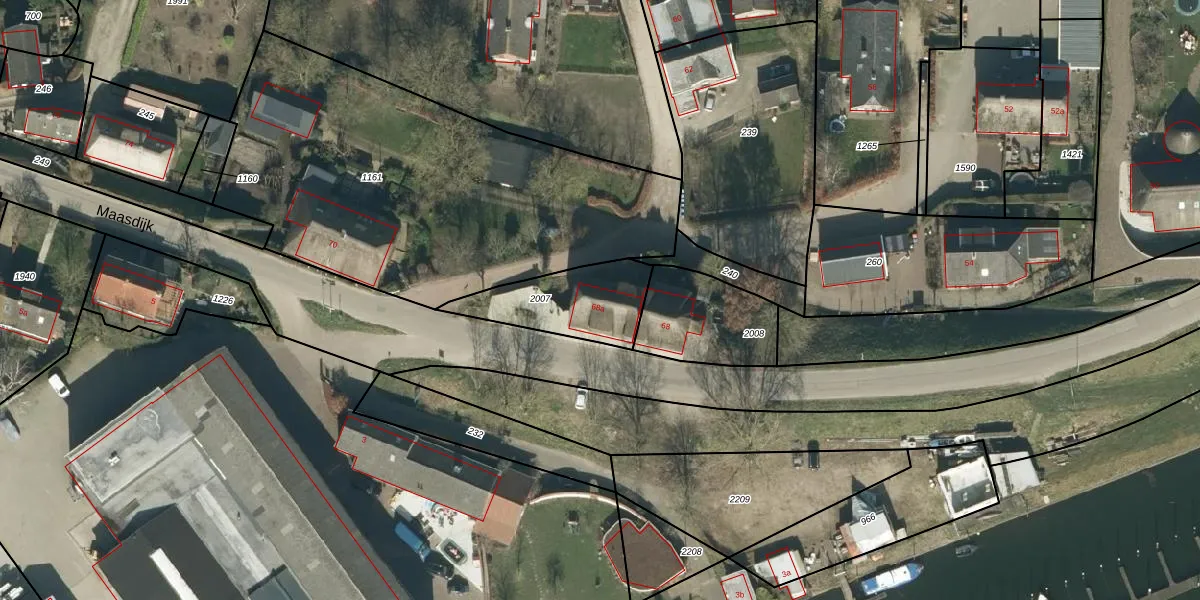 Het perceel waarop Maasdijk 68-a staat heeft een oppervlakte van 284 m². Dit is een middelgroot perceel. De perceeloppervlakte wordt geregistreerd door het Kadaster. Gedetailleerde informatie over de maten van dit perceel kunt u vinden in het rapport Kadastrale kaart met maatvoering van Maasdijk 68-a.