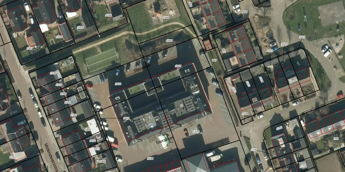 Het perceel waarop Sterakker 15 staat heeft een oppervlakte van 1580 m². Dit is een zeer groot perceel. De perceeloppervlakte wordt geregistreerd door het Kadaster. Gedetailleerde informatie over de maten van dit perceel kunt u vinden in het rapport Kadastrale kaart met maatvoering van Sterakker 15.