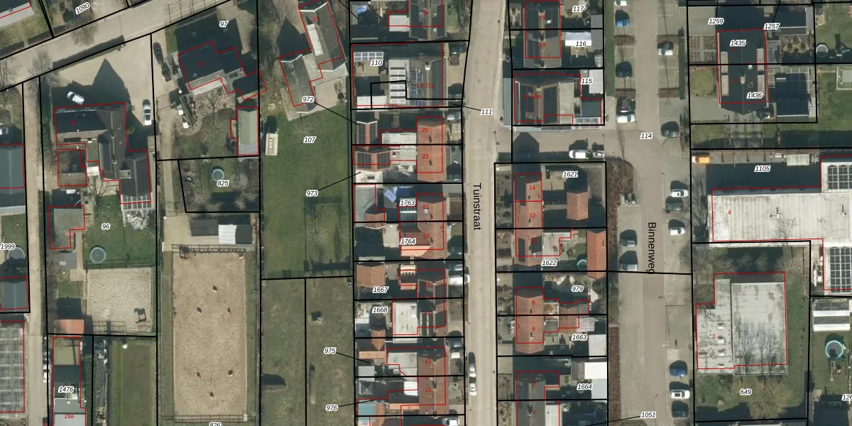Het perceel waarop Tuinstraat 21 staat heeft een oppervlakte van 241 m². Dit is een middelgroot perceel. De perceeloppervlakte wordt geregistreerd door het Kadaster. Gedetailleerde informatie over de maten van dit perceel kunt u vinden in het rapport Kadastrale kaart met maatvoering van Tuinstraat 21.