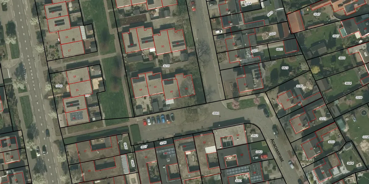 Het perceel waarop Acaciastraat 38 staat heeft een oppervlakte van 2885 m². Dit is een zeer groot perceel. De perceeloppervlakte wordt geregistreerd door het Kadaster. Gedetailleerde informatie over de maten van dit perceel kunt u vinden in het rapport Kadastrale kaart met maatvoering van Acaciastraat 38.