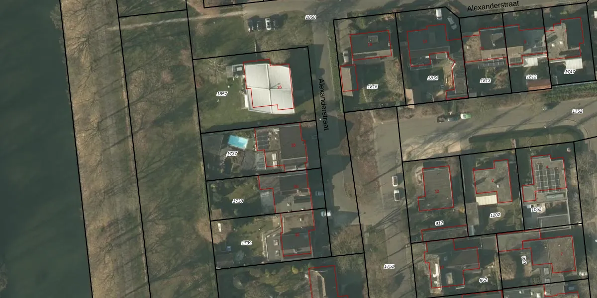 Het perceel waarop Alexanderstraat 28 staat heeft een oppervlakte van 627 m². Dit is een groot perceel. De perceeloppervlakte wordt geregistreerd door het Kadaster. Gedetailleerde informatie over de maten van dit perceel kunt u vinden in het rapport Kadastrale kaart met maatvoering van Alexanderstraat 28.