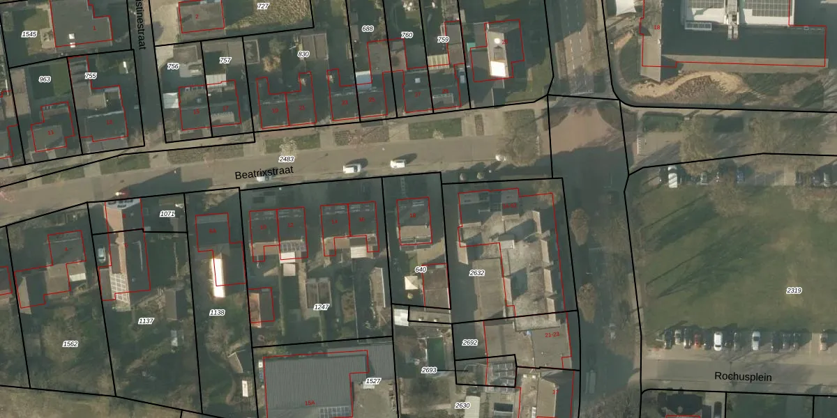 Het perceel waarop Beatrixstraat 18 staat heeft een oppervlakte van 445 m². Dit is een groot perceel. De perceeloppervlakte wordt geregistreerd door het Kadaster. Gedetailleerde informatie over de maten van dit perceel kunt u vinden in het rapport Kadastrale kaart met maatvoering van Beatrixstraat 18.