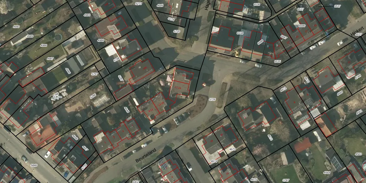 Het perceel waarop Beurseland 19 staat heeft een oppervlakte van 1537 m². Dit is een zeer groot perceel. De perceeloppervlakte wordt geregistreerd door het Kadaster. Gedetailleerde informatie over de maten van dit perceel kunt u vinden in het rapport Kadastrale kaart met maatvoering van Beurseland 19.