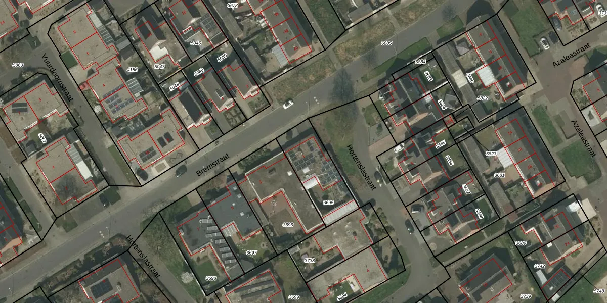 Het perceel waarop Bremstraat 1 staat heeft een oppervlakte van 425 m². Dit is een groot perceel. De perceeloppervlakte wordt geregistreerd door het Kadaster. Gedetailleerde informatie over de maten van dit perceel kunt u vinden in het rapport Kadastrale kaart met maatvoering van Bremstraat 1.