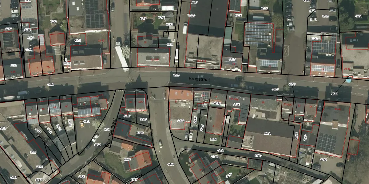 Het perceel waarop Brugstraat 12 staat heeft een oppervlakte van 340 m². Dit is een groot perceel. De perceeloppervlakte wordt geregistreerd door het Kadaster. Gedetailleerde informatie over de maten van dit perceel kunt u vinden in het rapport Kadastrale kaart met maatvoering van Brugstraat 12.