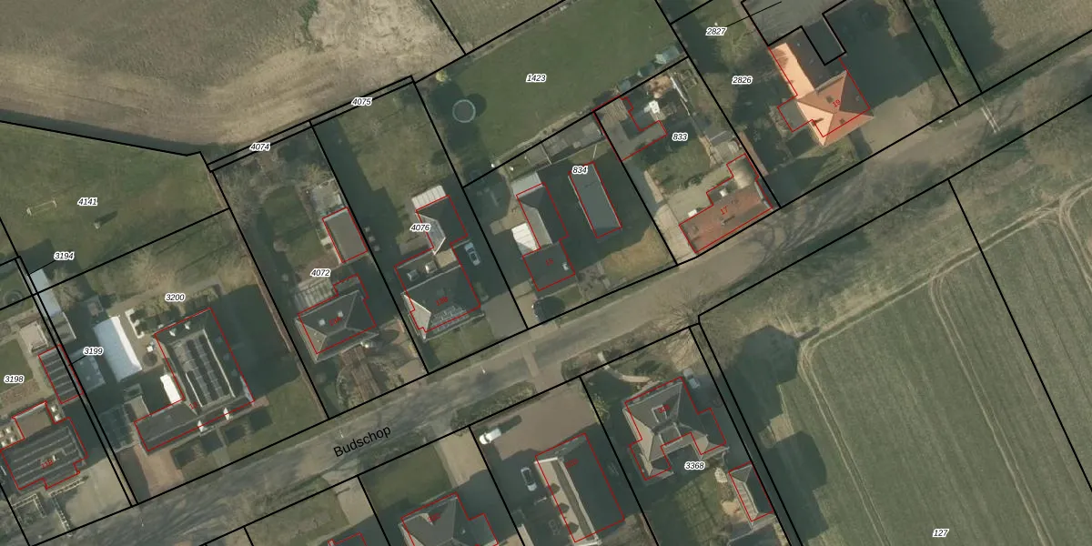 Het perceel waarop Budschop 15 staat heeft een oppervlakte van 855 m². Dit is een groot perceel. De perceeloppervlakte wordt geregistreerd door het Kadaster. Gedetailleerde informatie over de maten van dit perceel kunt u vinden in het rapport Kadastrale kaart met maatvoering van Budschop 15.