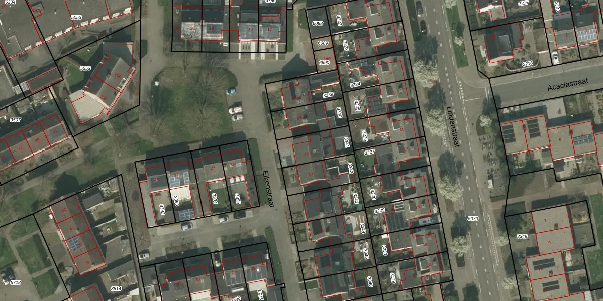 Het perceel waarop Eikenstraat 14 staat heeft een oppervlakte van 233 m². Dit is een middelgroot perceel. De perceeloppervlakte wordt geregistreerd door het Kadaster. Gedetailleerde informatie over de maten van dit perceel kunt u vinden in het rapport Kadastrale kaart met maatvoering van Eikenstraat 14.
