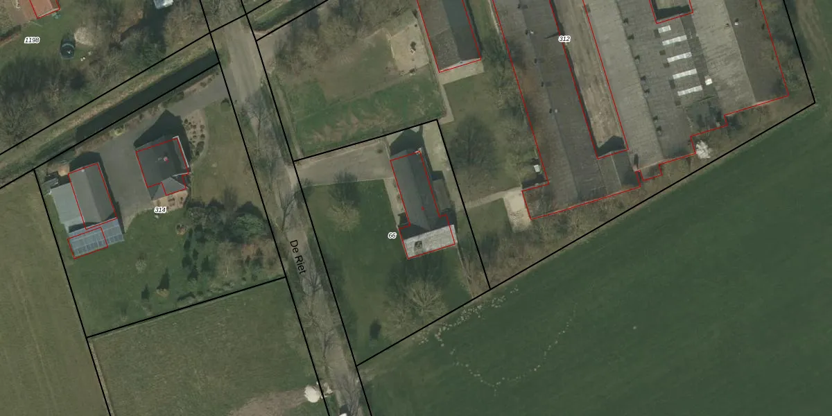 Het perceel waarop De Riet 4 staat heeft een oppervlakte van 1700 m². Dit is een zeer groot perceel. De perceeloppervlakte wordt geregistreerd door het Kadaster. Gedetailleerde informatie over de maten van dit perceel kunt u vinden in het rapport Kadastrale kaart met maatvoering van De Riet 4.