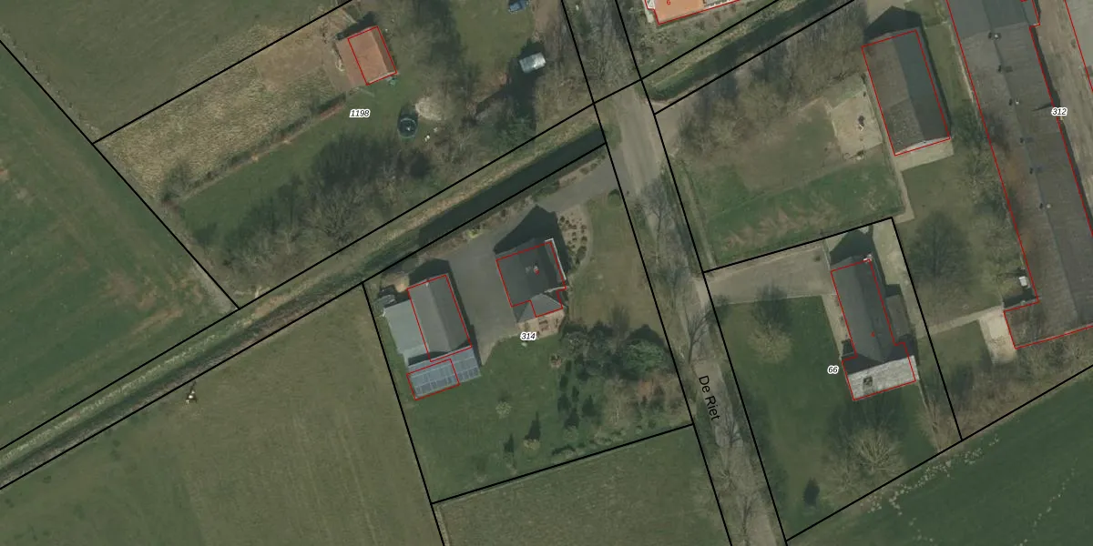 Het perceel waarop De Riet 5 staat heeft een oppervlakte van 2410 m². Dit is een zeer groot perceel. De perceeloppervlakte wordt geregistreerd door het Kadaster. Gedetailleerde informatie over de maten van dit perceel kunt u vinden in het rapport Kadastrale kaart met maatvoering van De Riet 5.