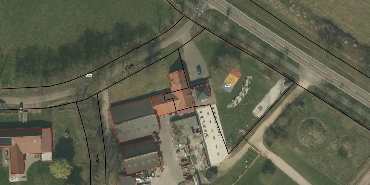 Het perceel waarop Eind 40 staat heeft een oppervlakte van 2210 m². Dit is een zeer groot perceel. De perceeloppervlakte wordt geregistreerd door het Kadaster. Gedetailleerde informatie over de maten van dit perceel kunt u vinden in het rapport Kadastrale kaart met maatvoering van Eind 40.
