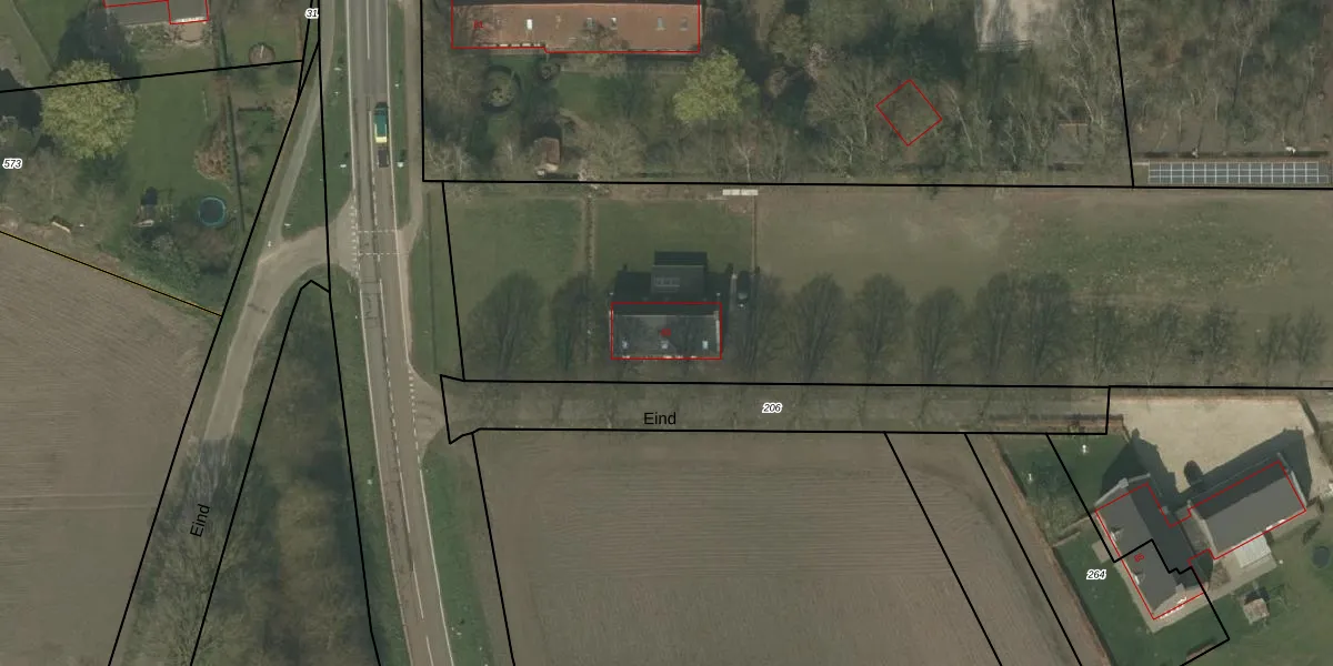 Het perceel waarop Eind 83 staat heeft een oppervlakte van 3,9 ha. Dit is een zeer groot perceel. De perceeloppervlakte wordt geregistreerd door het Kadaster. Gedetailleerde informatie over de maten van dit perceel kunt u vinden in het rapport Kadastrale kaart met maatvoering van Eind 83.