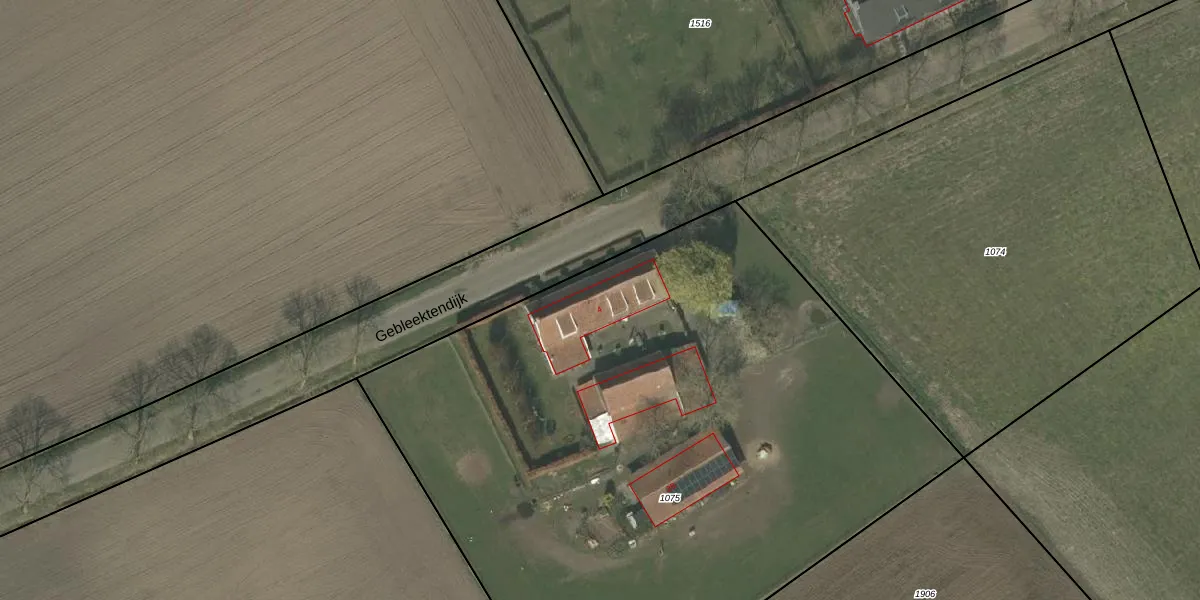 Het perceel waarop Gebleektendijk 4 staat heeft een oppervlakte van 4710 m². Dit is een zeer groot perceel. De perceeloppervlakte wordt geregistreerd door het Kadaster. Gedetailleerde informatie over de maten van dit perceel kunt u vinden in het rapport Kadastrale kaart met maatvoering van Gebleektendijk 4.