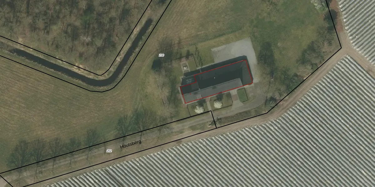 Het perceel waarop Houtsberg 1 staat heeft een oppervlakte van 1,4 ha. Dit is een zeer groot perceel. De perceeloppervlakte wordt geregistreerd door het Kadaster. Gedetailleerde informatie over de maten van dit perceel kunt u vinden in het rapport Kadastrale kaart met maatvoering van Houtsberg 1.