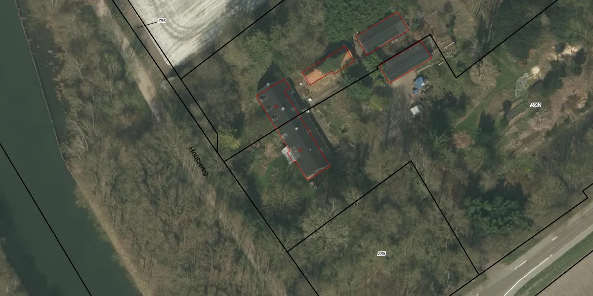 Het perceel waarop Houtsweg 18 staat heeft een oppervlakte van 1,1 ha. Dit is een zeer groot perceel. De perceeloppervlakte wordt geregistreerd door het Kadaster. Gedetailleerde informatie over de maten van dit perceel kunt u vinden in het rapport Kadastrale kaart met maatvoering van Houtsweg 18.