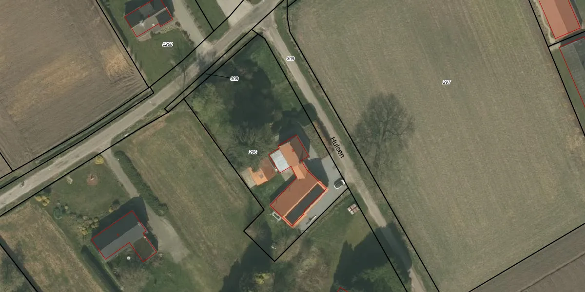 Het perceel waarop Hulsen 3 staat heeft een oppervlakte van 2020 m². Dit is een zeer groot perceel. De perceeloppervlakte wordt geregistreerd door het Kadaster. Gedetailleerde informatie over de maten van dit perceel kunt u vinden in het rapport Kadastrale kaart met maatvoering van Hulsen 3.