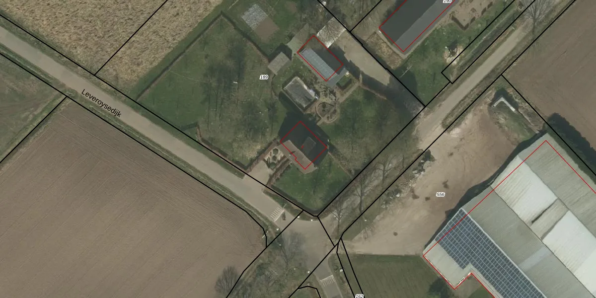 Het perceel waarop Leveroysedijk 5 staat heeft een oppervlakte van 5310 m². Dit is een zeer groot perceel. De perceeloppervlakte wordt geregistreerd door het Kadaster. Gedetailleerde informatie over de maten van dit perceel kunt u vinden in het rapport Kadastrale kaart met maatvoering van Leveroysedijk 5.