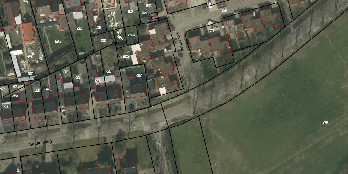 Het perceel waarop Loyenbos 1 staat heeft een oppervlakte van 963 m². Dit is een groot perceel. De perceeloppervlakte wordt geregistreerd door het Kadaster. Gedetailleerde informatie over de maten van dit perceel kunt u vinden in het rapport Kadastrale kaart met maatvoering van Loyenbos 1.